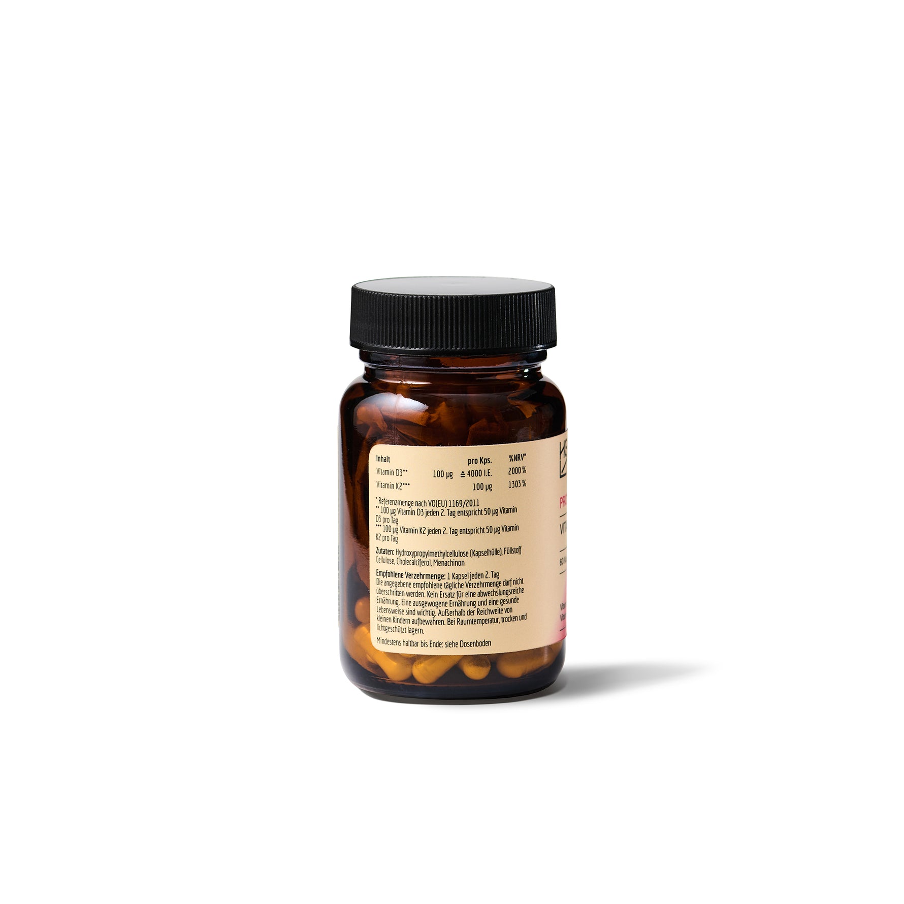 - Hochdosiert: 4000 I.E. Vitamin D3 + 100 µg K2 MK-7 all-trans*